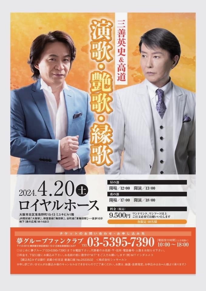 4/20 三善英史 & 高道 【演歌・艶歌・縁歌】(昼・夜)