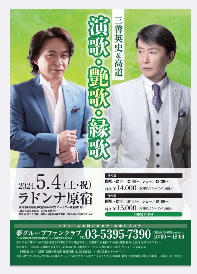5/4 三善英史 & 高道 【演歌・艶歌・縁歌】(昼・夜)
